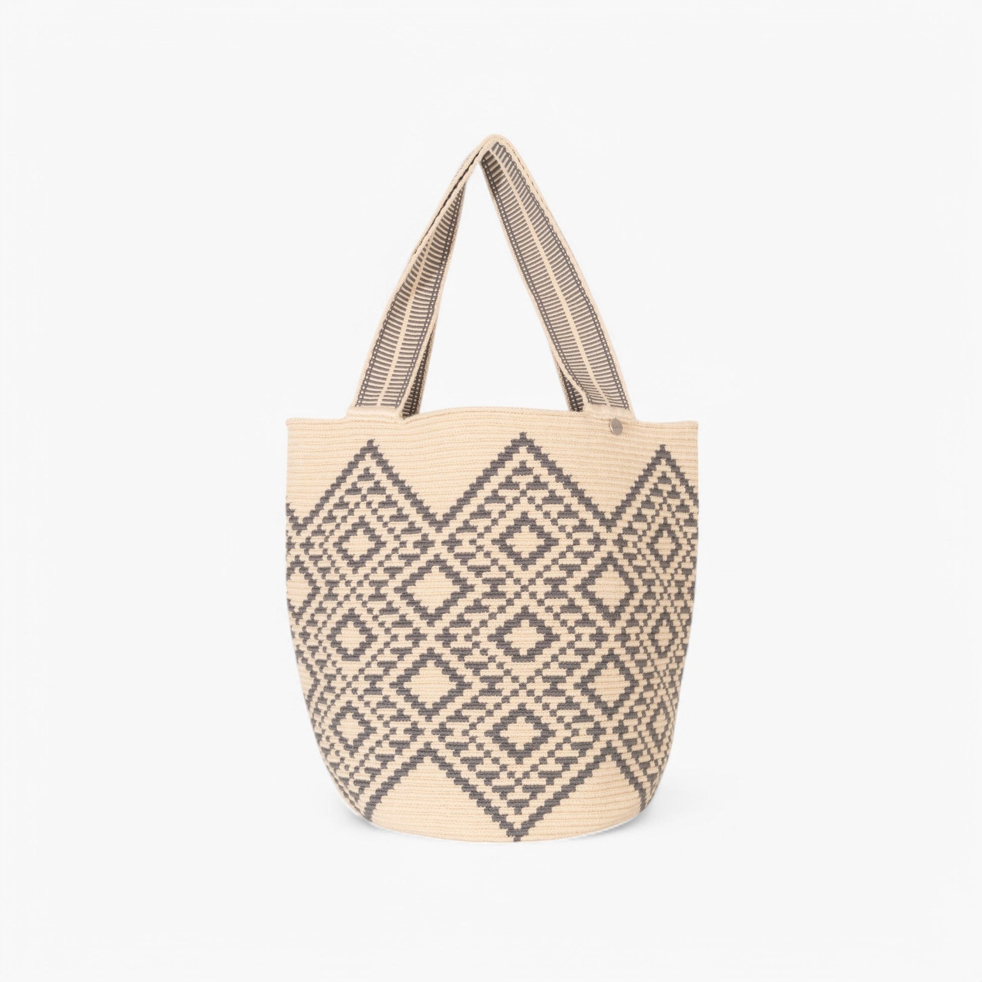 The roomy shape of the geometric round tote is perfect for days where you need all the essentials—and more. Crafted by Wayuu artisans using techniques passed down through generations.