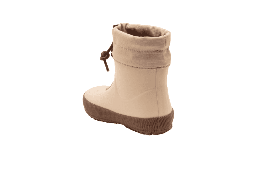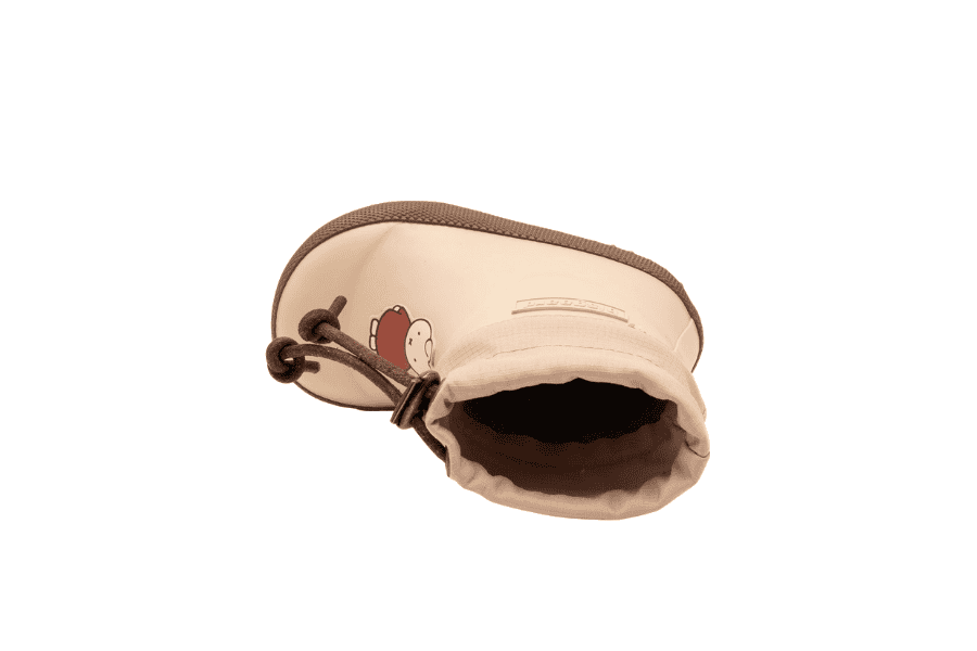 De laars is gemaakt van natuurlijk rubber en heeft een zachte lamswollen voering die de voeten warm houdt zonder dat ze gaan zweten. Zo blijven kleine voeten altijd comfortabel, of het nu regent of koud is. Dankzij de lage schacht bewegen kinderen makkelijk en trekken ze de laars ook zelf eenvoudig aan en uit. De linker laars heeft een paddestoel en de rechter een nijntje als als afbeelding.