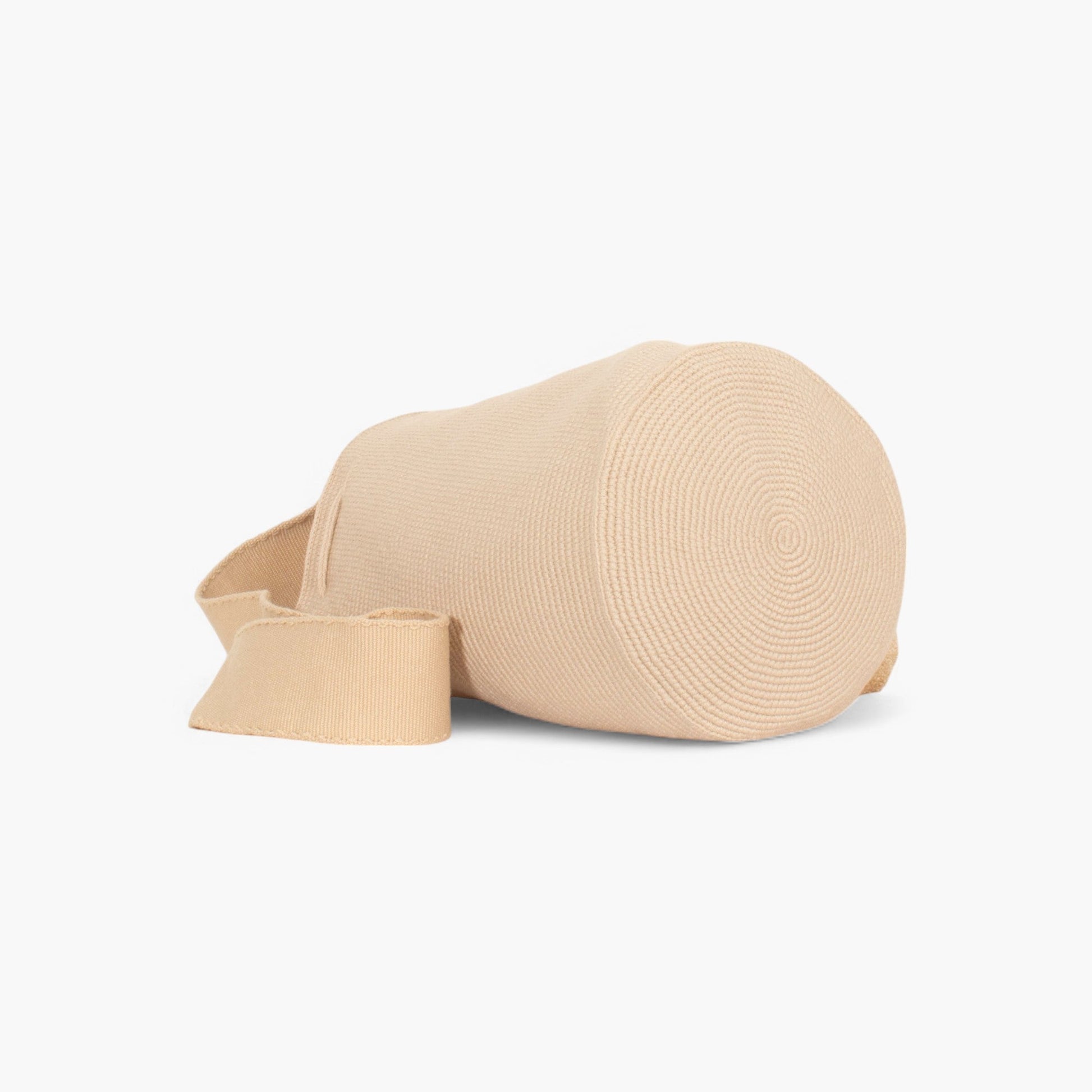 Woven into a round shape and completed with a wide crossbody strap for all-day wearability, and tassel drawstrings cords to keep your belongings secured.